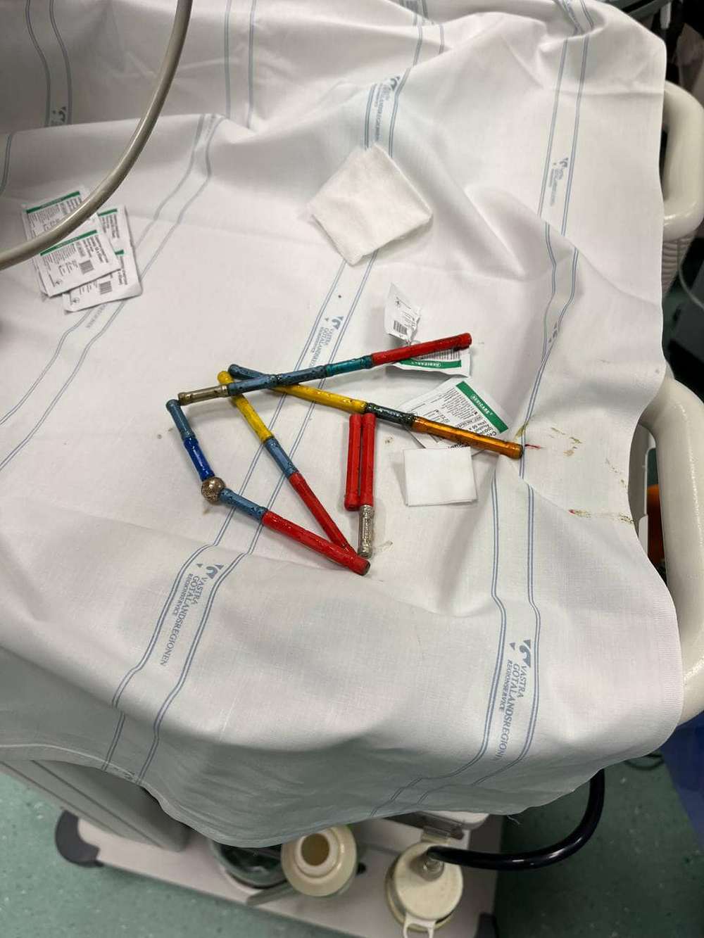 У лікарню звернулися батьки дитини, що скаржилась на біль у животі. Вже на першому рентген-знімку медики побачили, що у його травному каналі є ціла група сторонніх тіл. У них вдалося впізнати магнітний конструктор. 20 магнітів були в різних частинах шлунково-кишкового тракту, проте були зʼєднані між собою.
