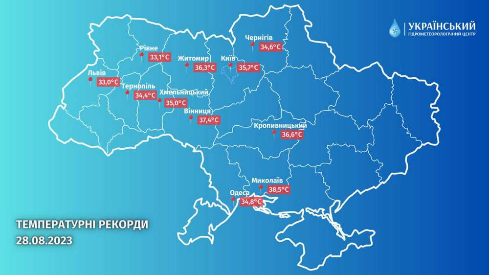 Спека в Україні не відступає і навіть посилилася на початку останнього тижня серпня. В 11 областях вчора, 28 серпня зафіксовано температурні рекорди. Про це повідомляє Український гідрометеорологічний центр, передає НСН.