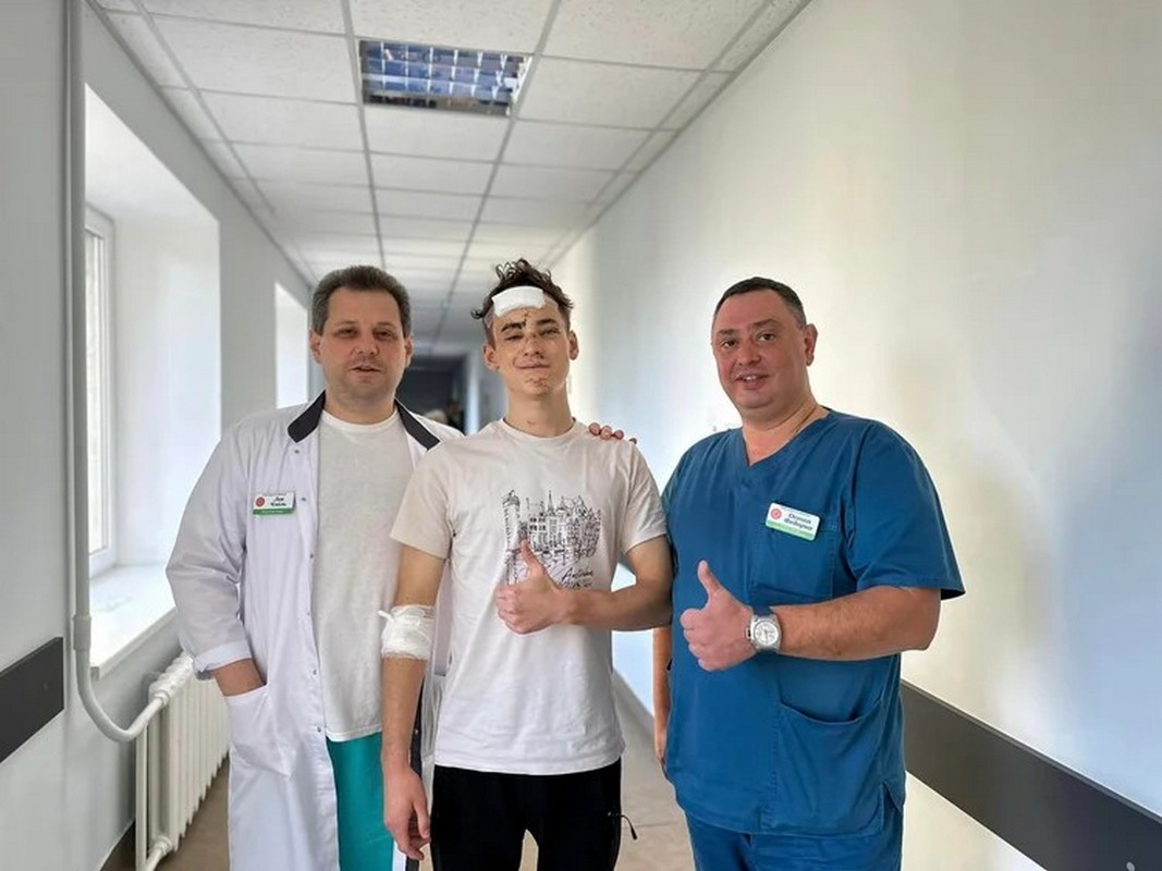 Наразі у хлопця є невеликий дефект в лобній кістці розміром 2х2,5 сантиметри. Його чекає повторна операція для закриття цього дефекту.