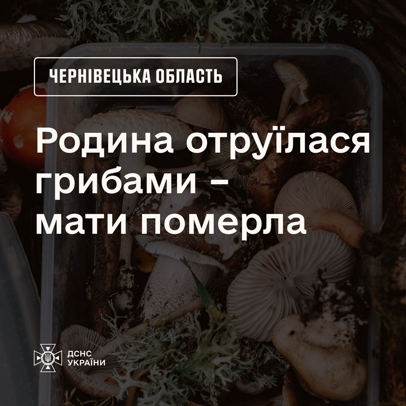 У місті Новодністровськ Чернівецької області сім’я отруїлася грибами. Мати не вижила.