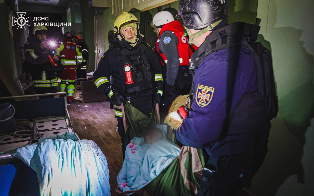 “Один із безпілотників влучив у триповерхову будівлю медзакладу, спричинивши пожежу на даху. Спільними зусиллями рятувальників, поліції, медиків і волонтерів евакуйовано 64 людини, серед них – 56 пацієнтів та дитина. За попередніми даними, постраждали 7 осіб”, – передали в ДСНС.