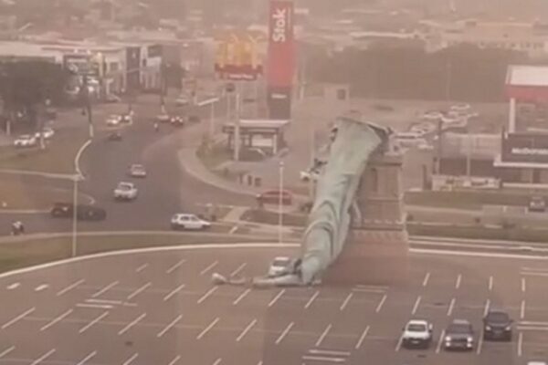 Через потужний вітер 24-метрова статуя Свободи в Бразилії впала просто на паркову торгового центру. Момент падіння потрапив на відео.