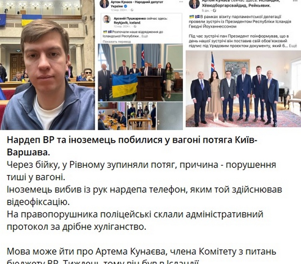 В потязі «Київ – Варшава» побилися нардеп та іноземець