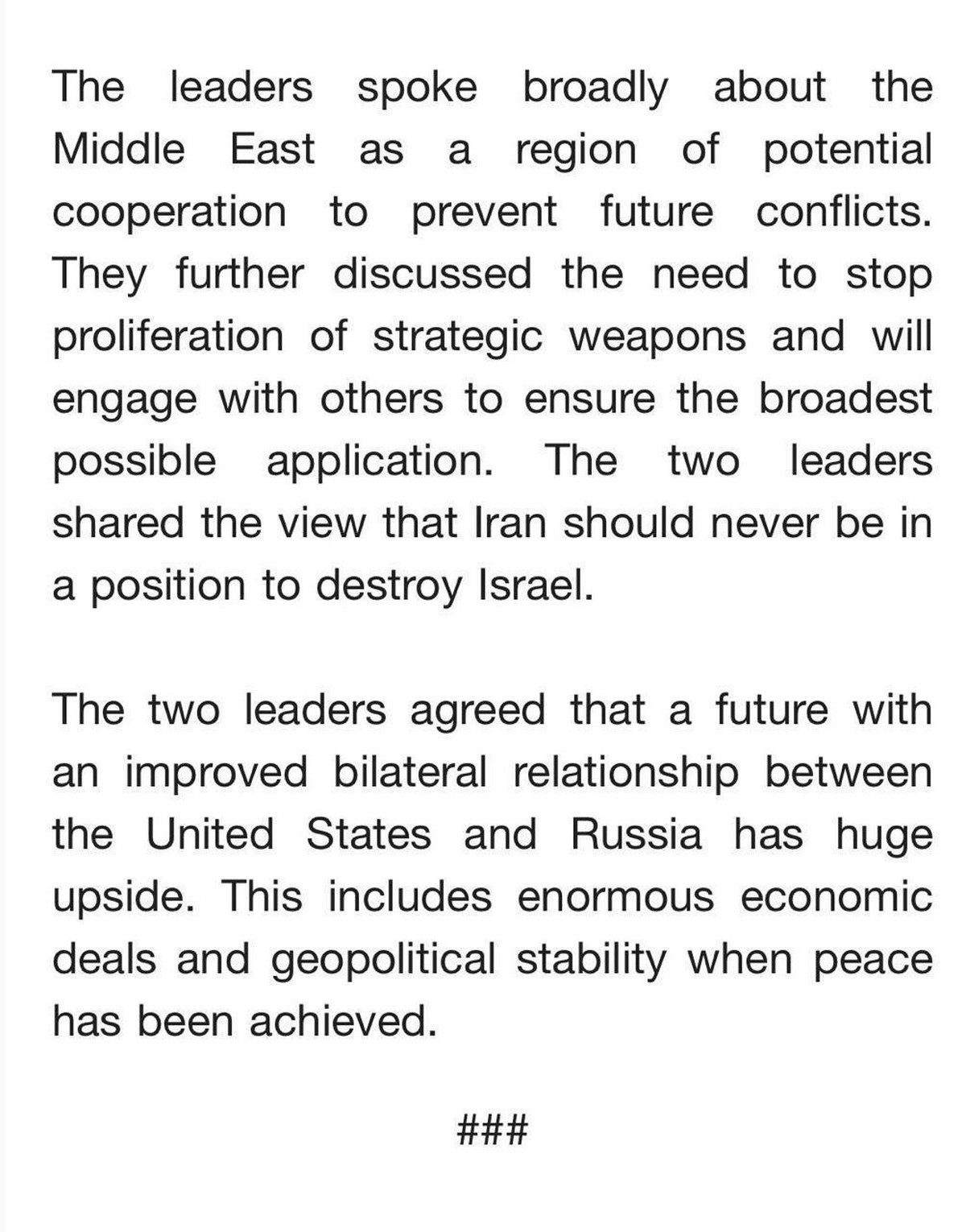 «Під керівництвом Путіна і Трампа світ сьогодні став набагато безпечнішим місцем» – заявили одразу після переговорів у Кремлі.