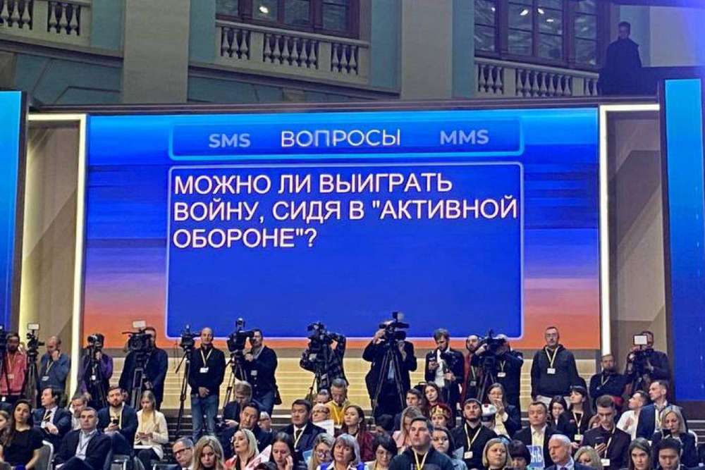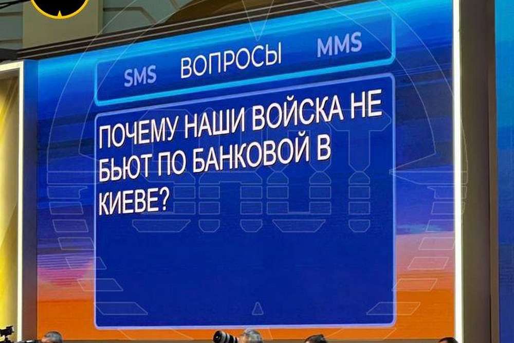 14 грудня на пресконференції путіна на екрані транслювали питання, які поставили глядачі в смс-повідомленнях, багато з них стосується війни проти України.