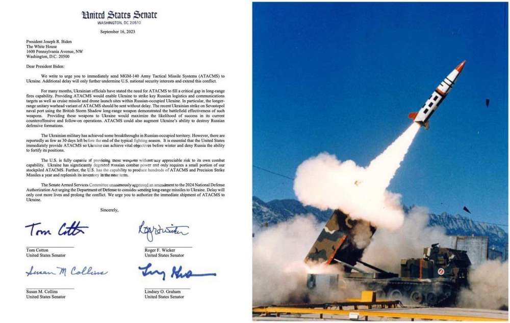 Україна значно послабила бойову міць росії, і їй потрібна лише невелика частина наших запасів ATACMS, — заявили сенатори.