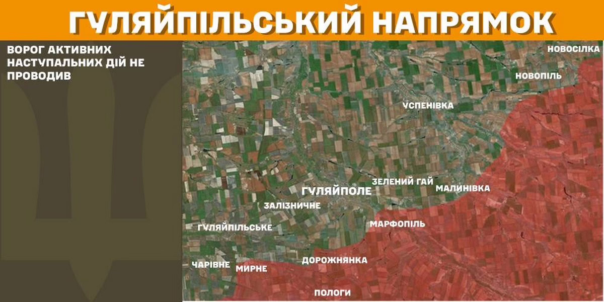 - На Гуляйпільському і Придніпровському напрямках минулої доби ворог активних наступальних дій не проводив.