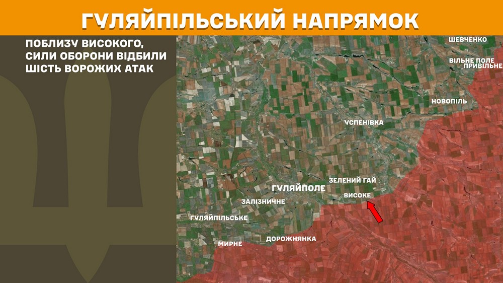 На Гуляйпільському напрямку, поблизу Високого (кол.Червоне), Сили оборони відбили шість ворожих атак.