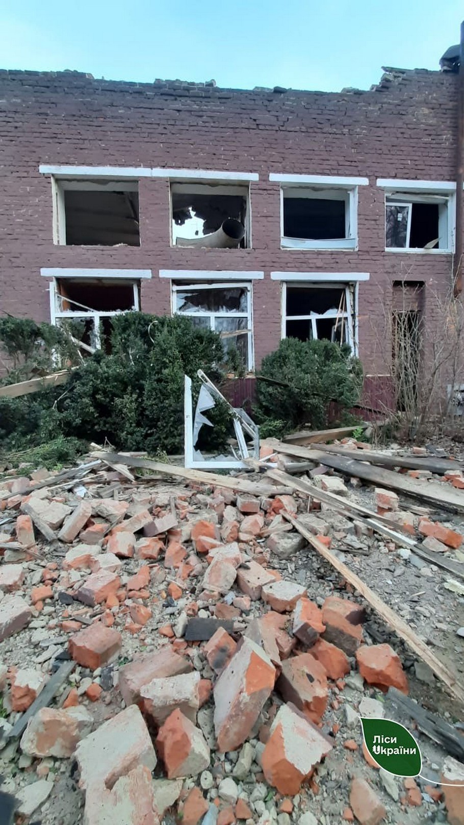 “Знищено цех переробки деревини, значно пошкоджені автогараж лісництва та техніка. У будівлях працівників вибиті вікна”, — повідомили філії “Північний лісовий офіс ДП “Ліси України”