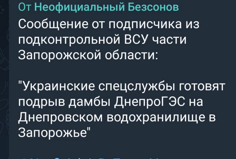 Зазначимо, що окупанти анонсували свій удар по ДніпроГЕС. Так, зокрема одіозний пропагандист і загарбник з позивним Тринадцятий публікував 21 березня ось такий скрін. Було зрозуміло, що удар готують самі росіяни.